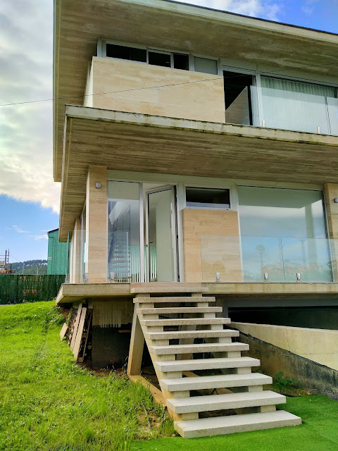 De esta manera se consigue una extrema sencillez, dando protagonismo al hormigón y el vidrio, buscando la rusticidad de materiales 'honestos', prácticos y duraderos, sin revestimientos que los disfracen, sin imitaciones de lo que no son. En el interior la madera natural en suelos y ciertas paredes se combina con el hormigón visto de los techos, aportando toda su calidez.